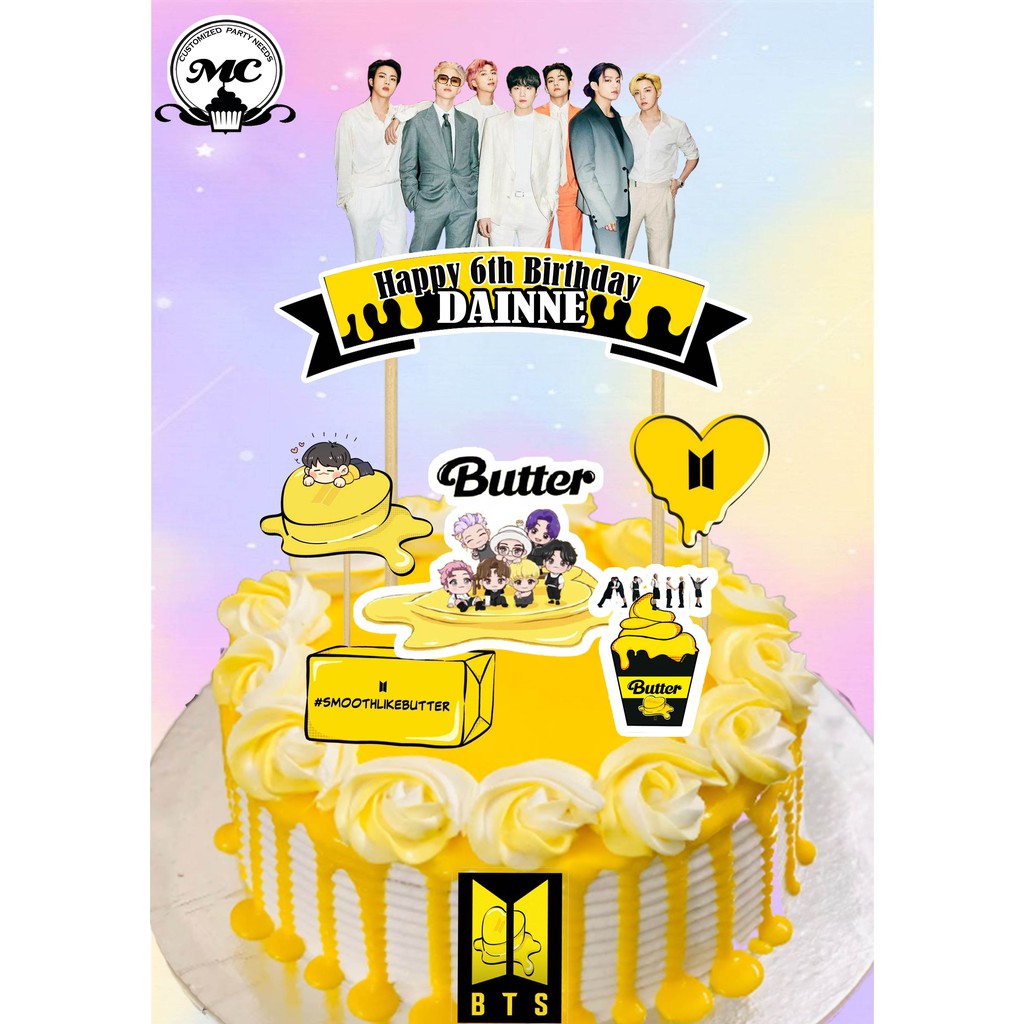 I then covered and decorated it with marshmallow fondant. Bts butter cake topper available now for youe . A step by step (fast) video tutorial on how to make bts butter cake.hope you learn from this video, thanks & enjoy! Are you excited for the release of bts's new single, butter? Butter bts bento cake available sizes: Hey army and bts fans! Classic vanilla cookies and cream belgian . Membuat alternatif baru bts birthday cake selain bentuk love dalam tema . For all your baking needs! Kami persembahkan bts 'butter' themed cake dalam tutorial kali. All cake designs are as shown and cannot be customised further. ❤️ please read before ordering❤️ our custom cake order lead time is 3 days. Bts butter cake topper 1 set of 6pcs height ± 6cm 260g art paper that includes stabbing. #buttercakechallenge #bts #bts_butter #btsarmy #btscake" .